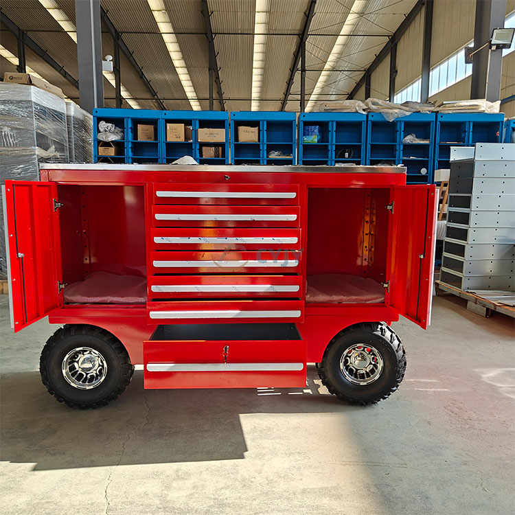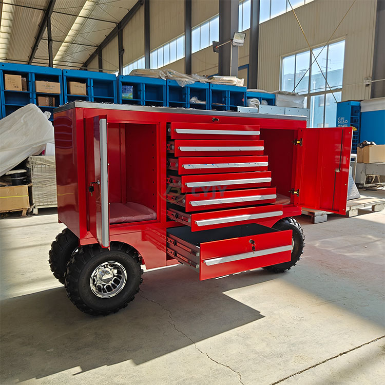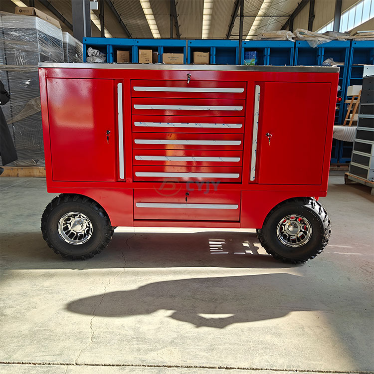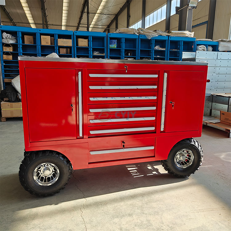 Níl aon amhras ach go bhfuil an fheithicil uirlisí ilfheidhmeach chun cinn seo ar dheis na ceardaithe nua-aimseartha agus na n-oibreoirí lasmuigh. Ní hamháin go gcuireann a chomh-aireachta uirlisí dearg buailte dath dath ar shuíomh oibre gruama nó ar thimpeallacht lasmuigh, ach is siombal é freisin a fóntais chumhachtach agus a marthanacht. Tá dhá roth trá leathan ag bun an ghluaisteáin uirlisí, nach bhfuil oiriúnach ach amháin le haghaidh gluaiseacht tapa ar an talamh cothrom, ach is féidir freisin tiomáint cobhsaí a choinneáil fiú i dtimpeallacht láibeach nó míchothrom lasmuigh, ionas nach gá duit a bheith buartha faoi ní féidir leis an gcarr uirlis an trioblóid a bhaint amach nuair a bhíonn sé ag obair lasmuigh.