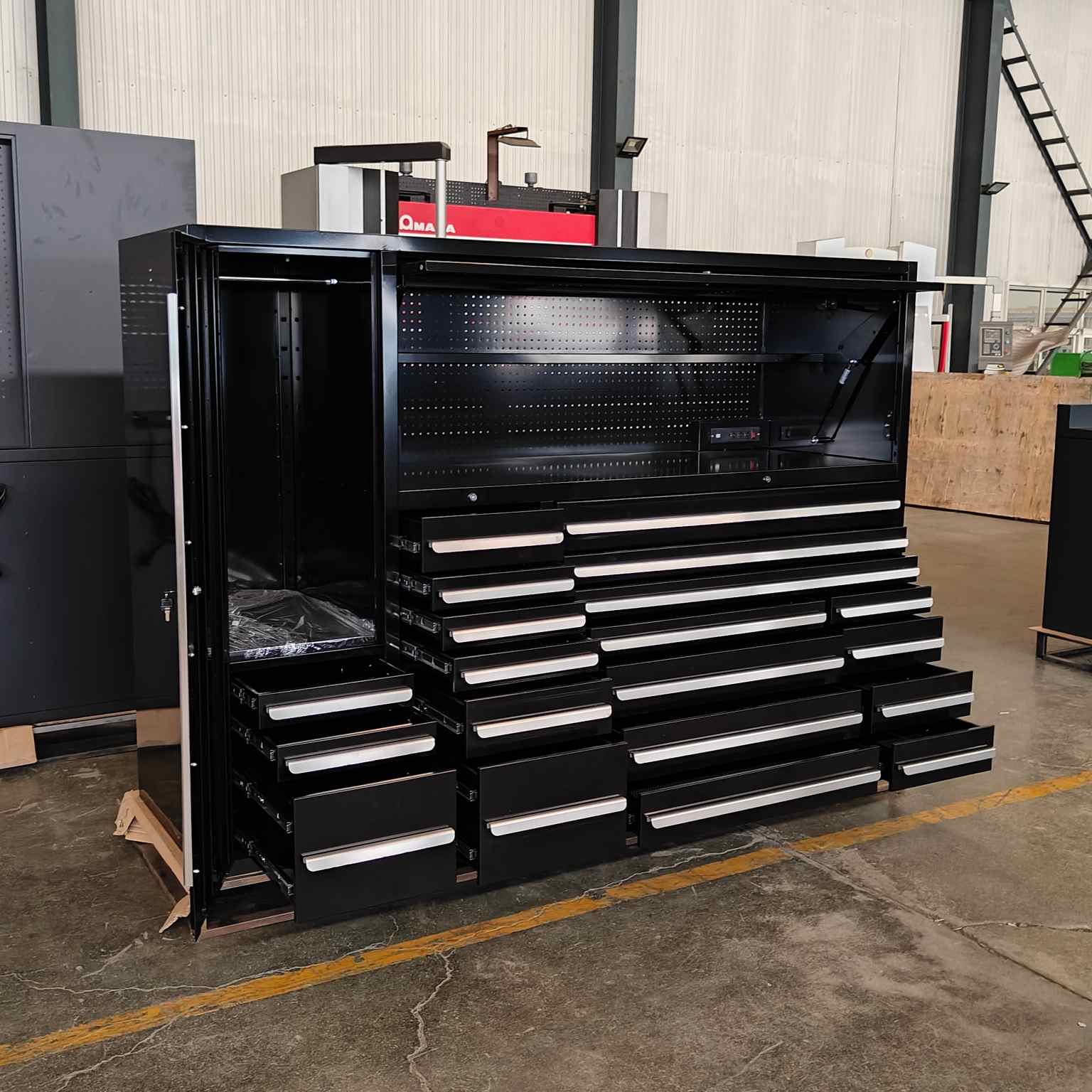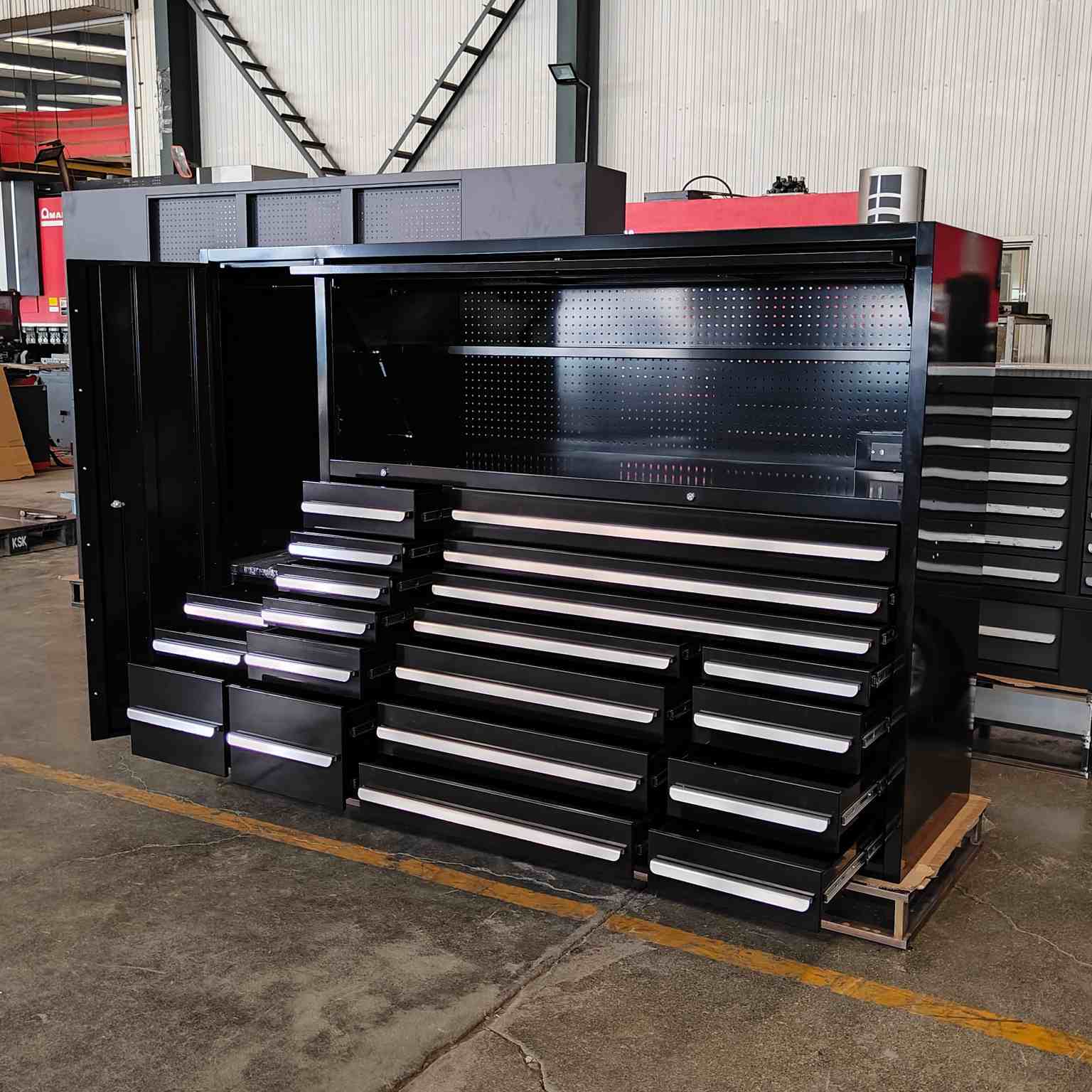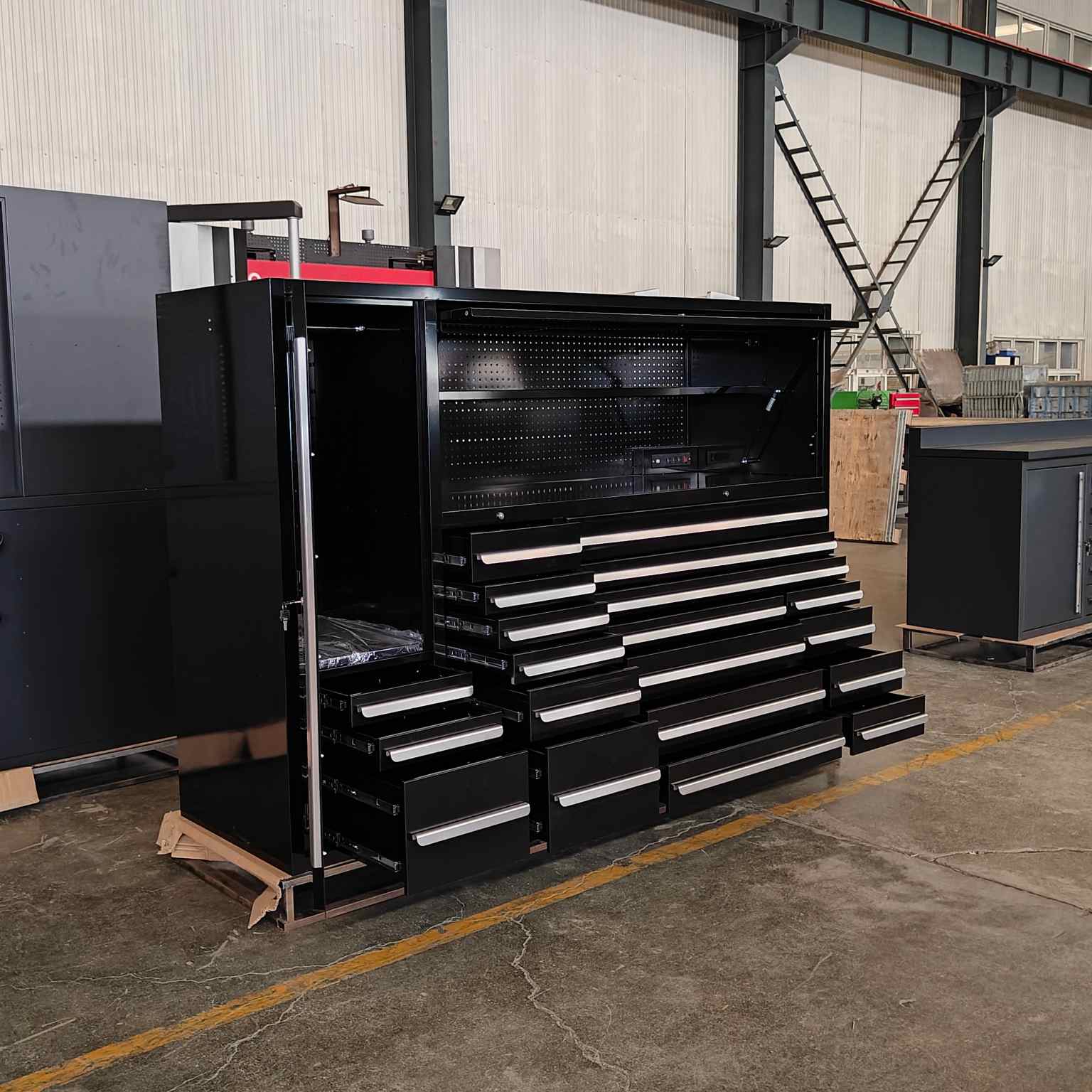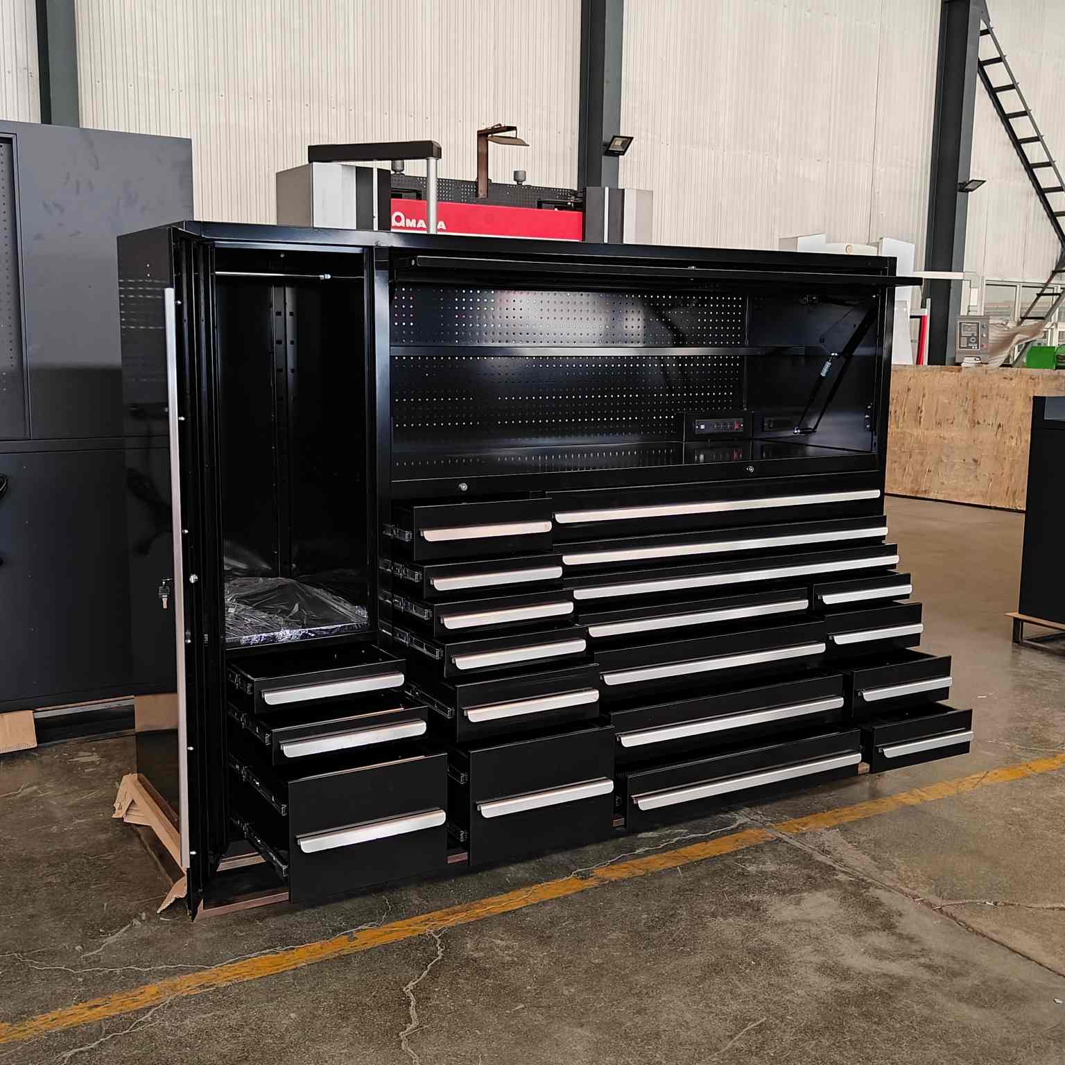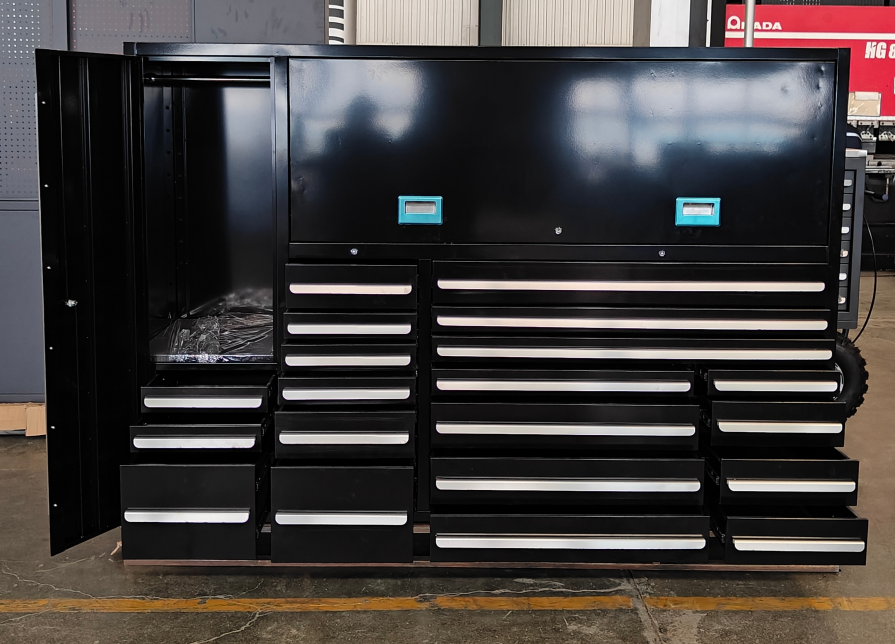 Tá comh-aireacht uirlis ilfheidhmeach dubh déanta as cruach rollta fuar a sholáthraíonn neart agus bailchríoch dromchla níos fearr.CiainéisIs féidir le méid, cumraíocht, agus gabhálais saincheaptha ar do chuid riachtanas. Mar fhocal scoir agus níos tábhachtaí fós, comhlíonann sé caighdeáin an tionscail.