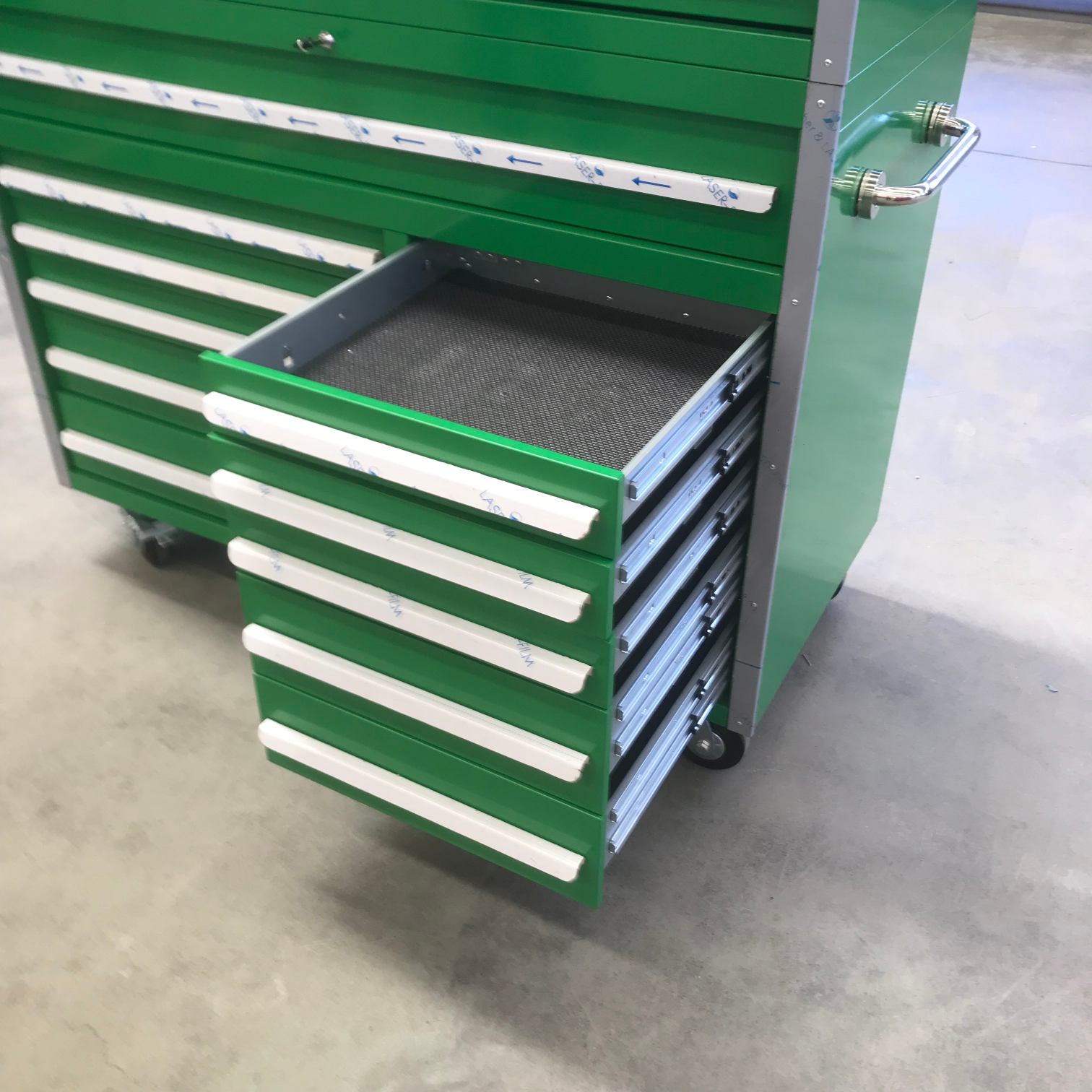 Is féidir leis an gcomh -aireachta stórála rollta rollta rollta uirlisí deisiúcháin feithicleach a eagrú i siopaí deisiúcháin na ngluaisteán. Freastalaíonn spás mór inmheánach agus ráta tarraingthe an tarraiceán ar chodanna móra na ngluaisteán.