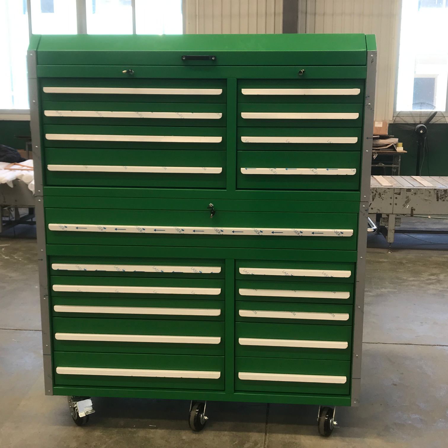 Baintear úsáid as an gcomh -aireachta stórála rollta rollta chun uirlisí láimhe, uirlisí cumhachta, páirteanna spártha meicniúla agus trealamh beag a stóráil i dtionsclaíoch, i gceardlanna agus i mbaile. Tugann an cumas ardualaigh agus an dearadh soghluaiste deis d'oibrithe rochtain a fháil go héasca ar mhíreanna ag stáisiúin oibre éagsúla.