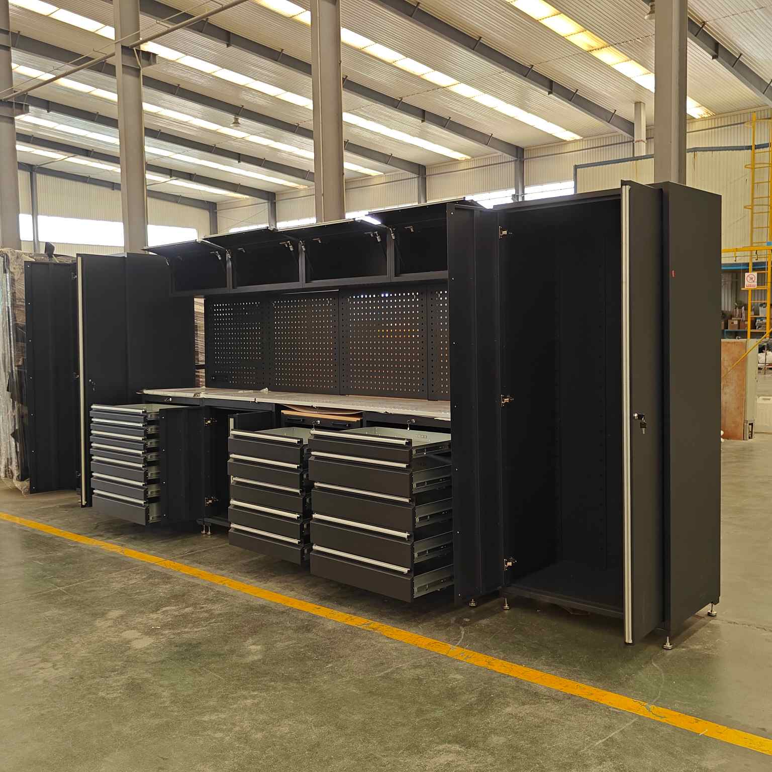 1. Comh -aireachta garáiste cruach rollta fuar a sheasamh le húsáid laethúil, tacair uirlisí troma a shealbhú, agus cuma ghlan, ghairmiúil a choinneáil do chliaint.