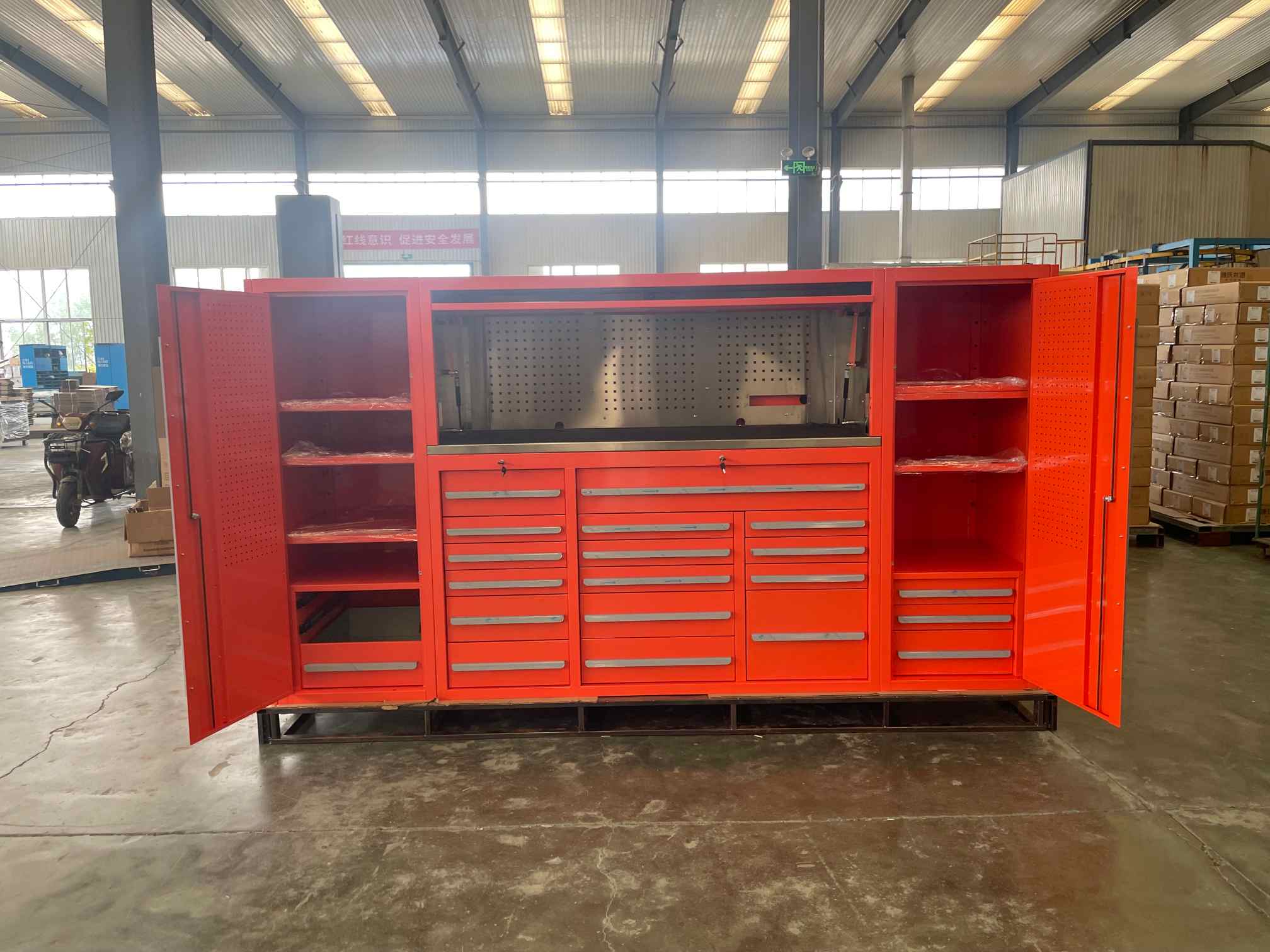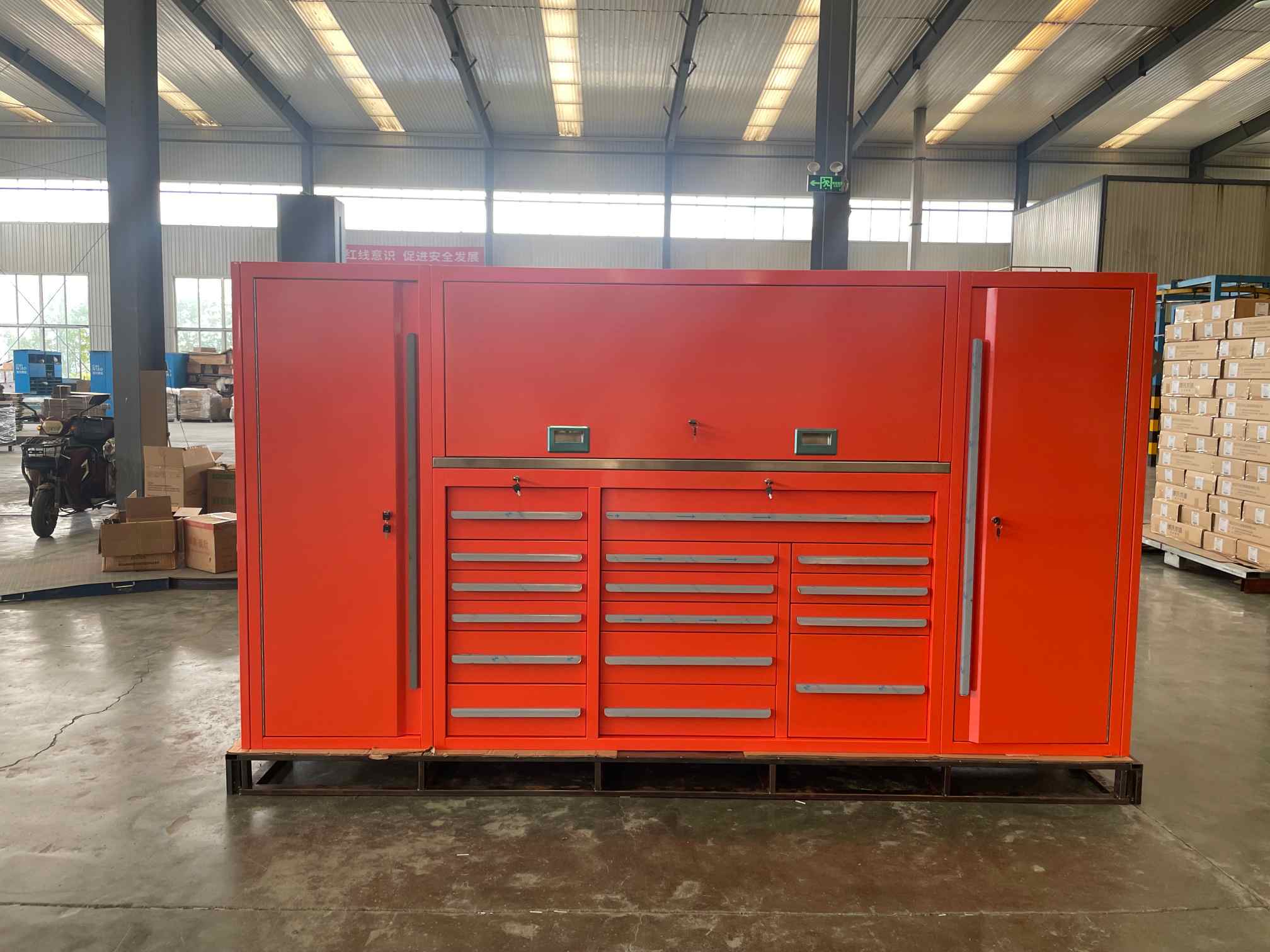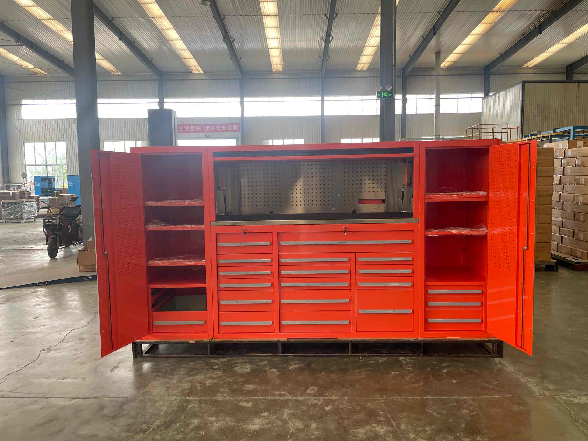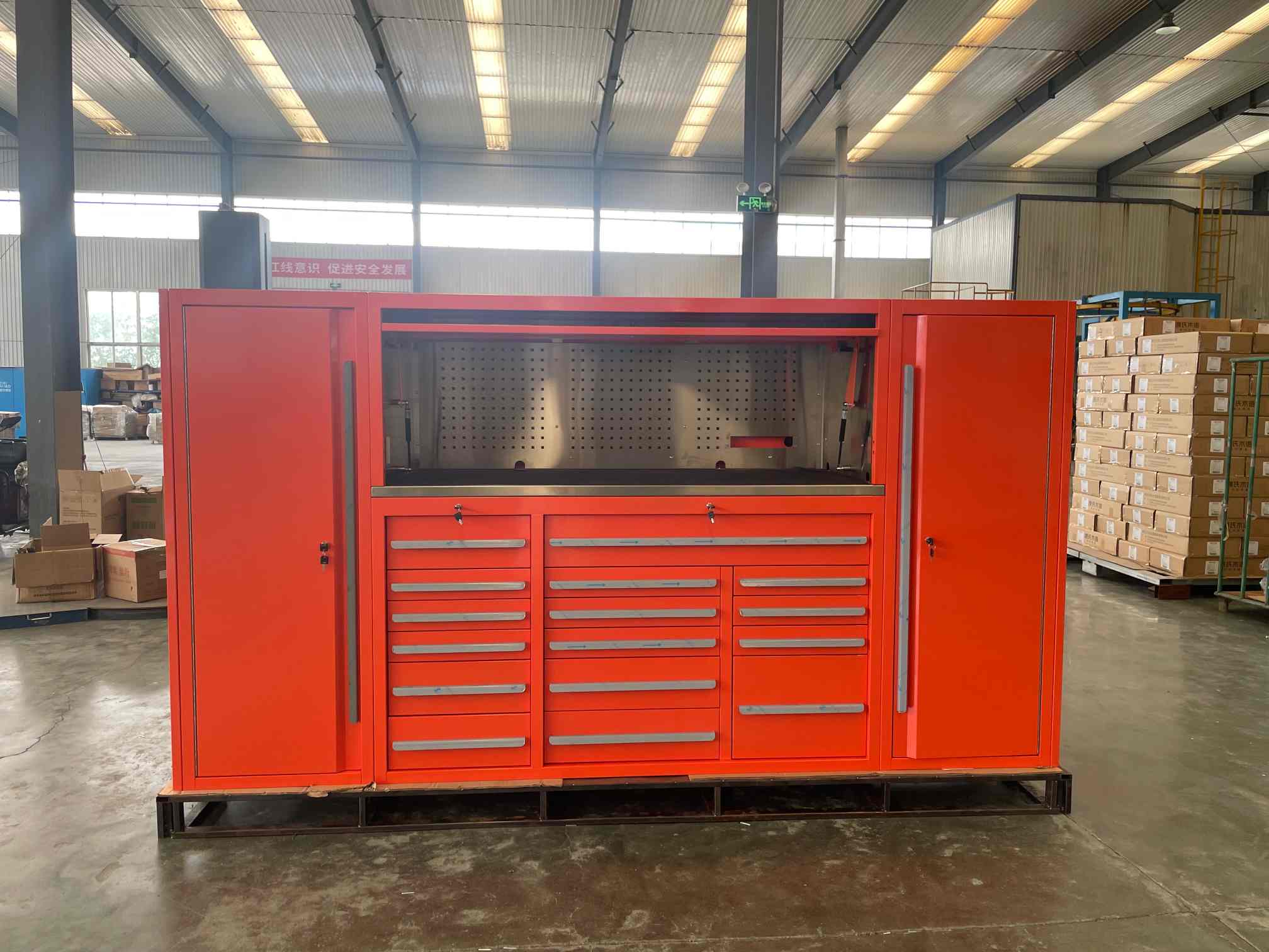 ITá comh -aireacht uirlis cruach rollta fuar deartha le haghaidh ceardlanna gairmiúla, monarchana, garáistí, agus timpeallachtaí tionsclaíocha ina bhfuil eagrú agus marthanacht ríthábhachtach. Tá an comh-aireacht seo déanta as cruach fhuar préimhe fuar agus críochnaithe le sciath frith-scratch, cuireann an comh-aireacht seo neart níos fearr, friotaíocht creimthe, agus feidhmiúlacht fhadtéarmach ar fáil.