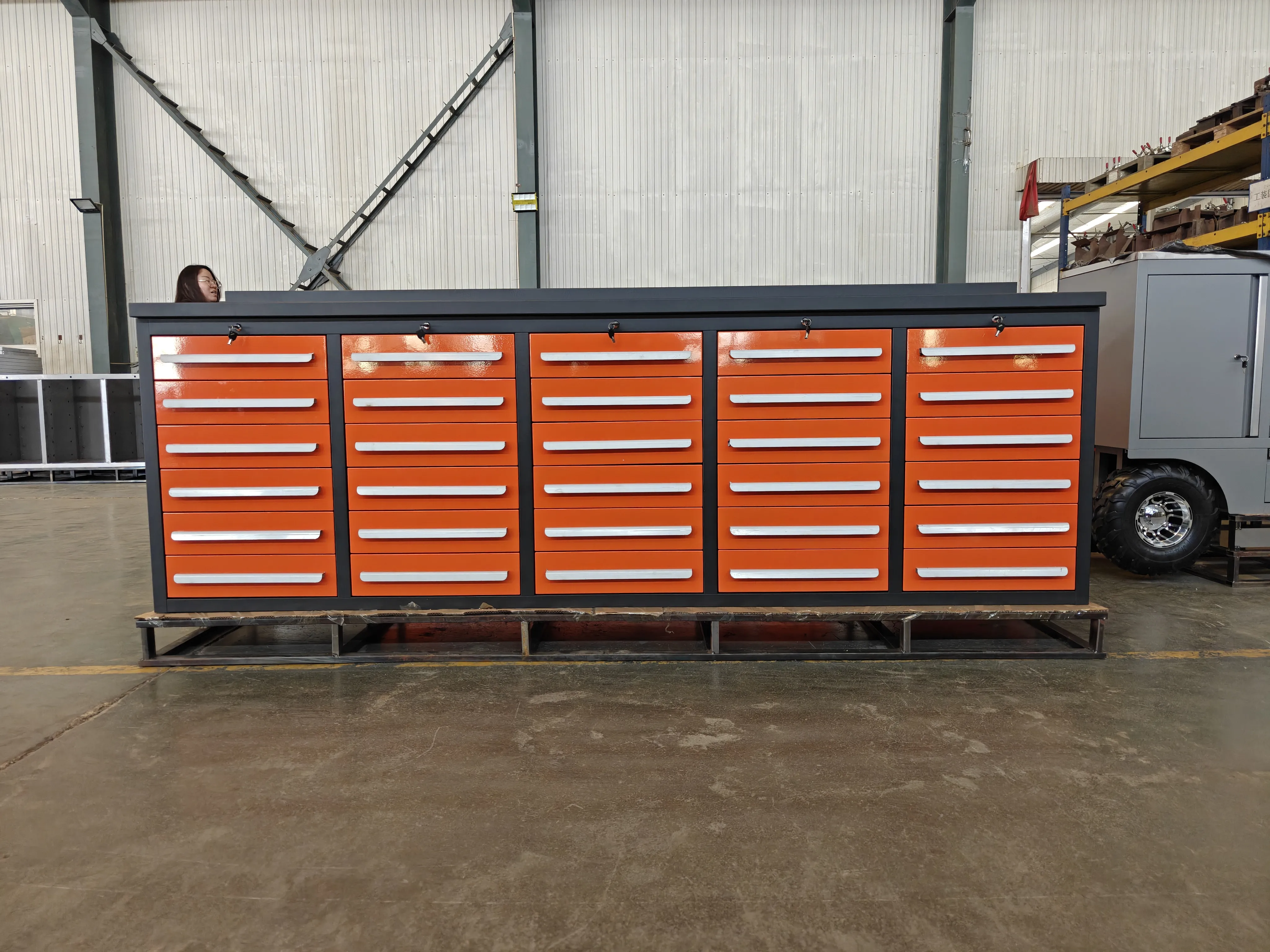 Dearadh ualach-ualach tarraiceán: Is féidir le tarraiceán amháin rudaí troma a iompar (féach ar pharaiméadair theicniúla le haghaidh ualach ar leith), ag cinntiú go stóráiltear uirlisí troma go sábháilte.