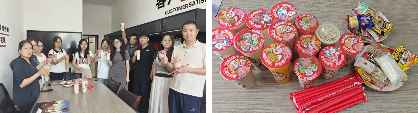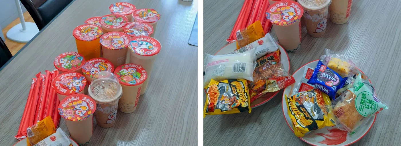 Ar an 7 Lúnasa. Bhailigh an Bainisteoir Wu roghanna blas na bhfostaithe roimh ré, ag clúdach cineálacha éagsúla ar nós tae bainne péarla, tae torthaí, agus tae caipín bainne. Chomhoibrigh siad freisin le brandaí tae bainne aitheanta chun seachadadh úr deochanna a chinntiú. I dtráthnóna tús an fhómhair, dháil an Bainisteoir Wu taenna bainne pacáistithe go néata ar gach roinn.