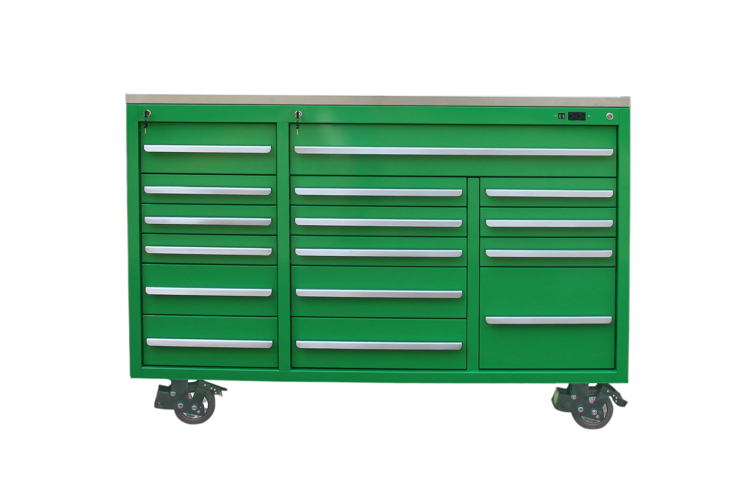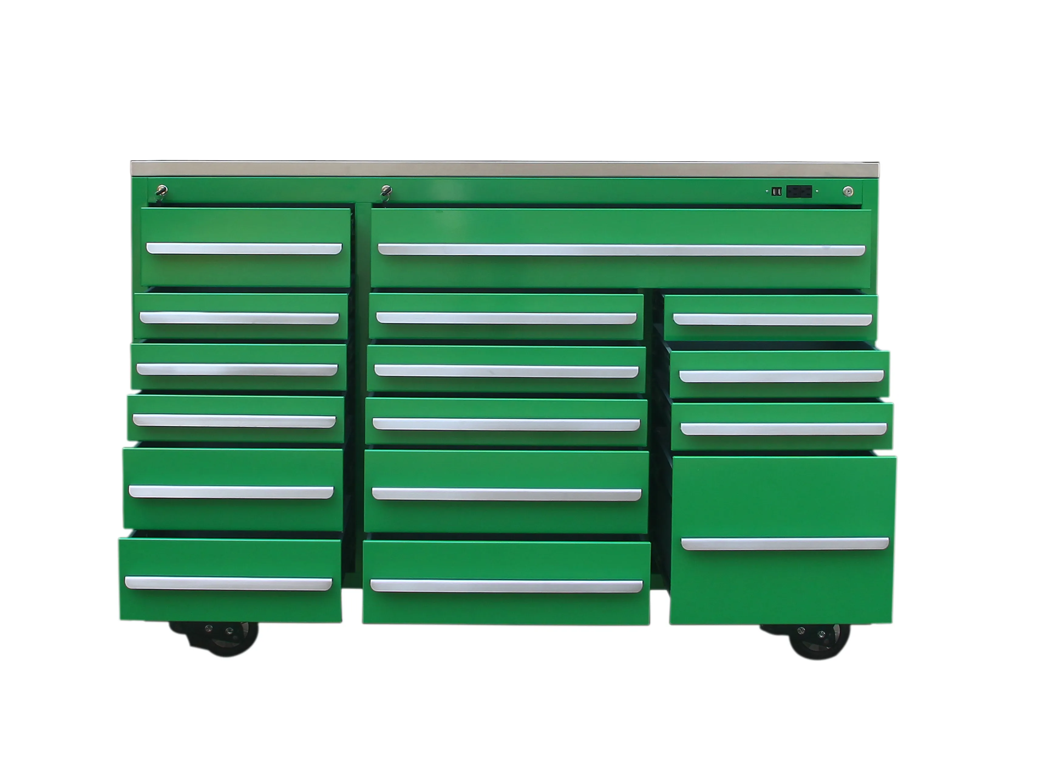 CYJYcomh-aireachta uirlisí le drawer le feidhmíocht den scoth agus praghas íseal an eochair chun éifeachtúlacht oibre a fheabhsú agus sábháilteacht uirlisí a chinntiú. Tá an comh-aireachta uirlisí seo déanta as cruach fuar-rollta. Is féidir leis dul i ngleic go héasca le timpeallachtaí úsáide ard-déine, ag seachaint go héifeachtach fadhbanna cosúil le dífhoirmiú agus damáiste de bharr úsáid fadtéarmach, agus spás stórála sábháilte fadtéarmach a sholáthar d'uirlisí.