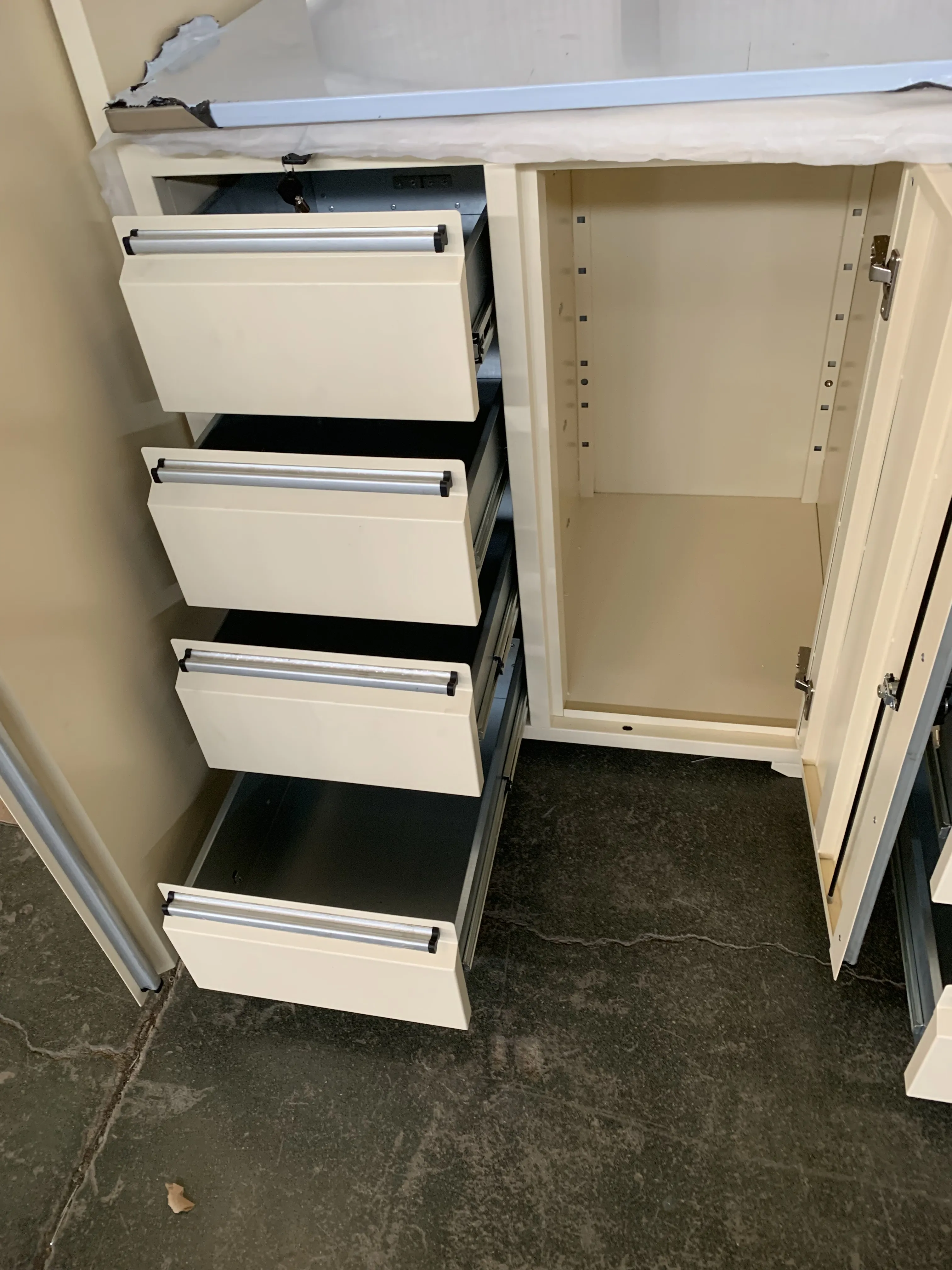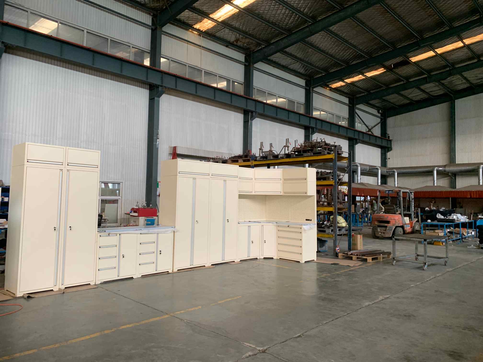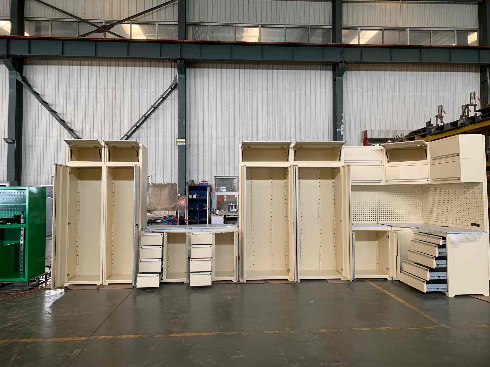 NTDéantar innealtóireacht ar chomh-aireacht gharáiste na mbinse oibre chun míreanna troma a stóráil go slán-lena n-áirítear uirlisí, páirteanna meicniúla, agus buneilimintí éagsúla tí-ábhair imní faoi theorainneacha ualach na sleamhnáin tarraiceán. A bhuíochas dá dhearadh struchtúrach láidir (córais sleamhnáin tarraiceán optamaithe go háirithe le cumais fheabhsaithe meáchain a bhaineann leis), seachadann an comh-aireacht seo feidhmíocht iontaofa fiú faoi ualaí troma. Mar thoradh air sin, anCiainéisSeasann comh-aireacht gharáiste na mbinse oibre mar réiteach stórála an-phraiticiúil, ag eagrú spásanna garáiste tranglam go héifeachtach agus ag cinntiú marthanacht fhadtéarmach le haghaidh úsáide tromshaothair.